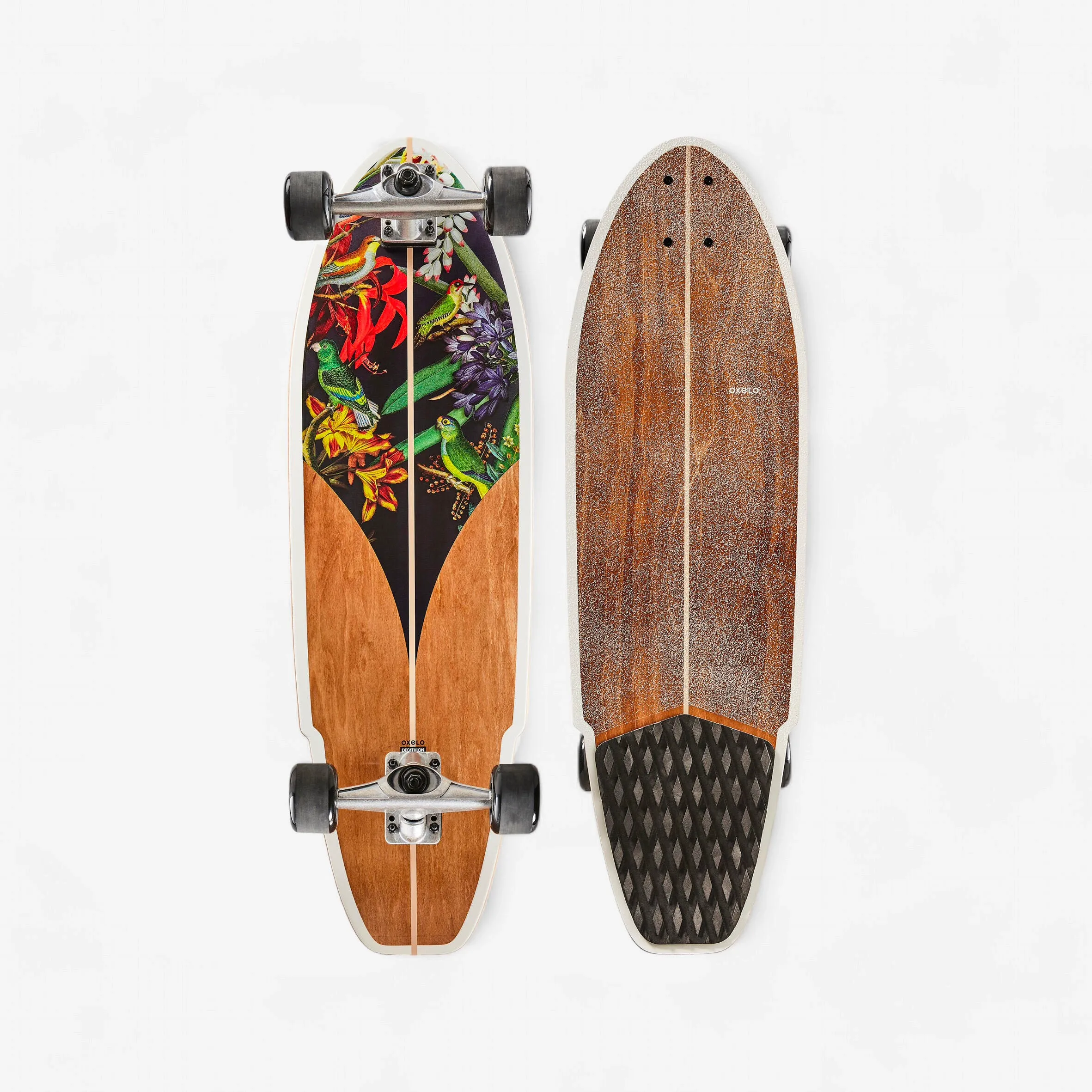 The most affordable surfskate at €89.99. CX-type Oxelo trucks, adjustable wheelbase (19.75"–21.25"), 32.6" maple deck. A reliable first board for beginners.