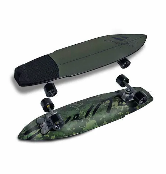 Rear heel overhang past the tail is normal on surfskates — it helps with leverage for pumping and carving.