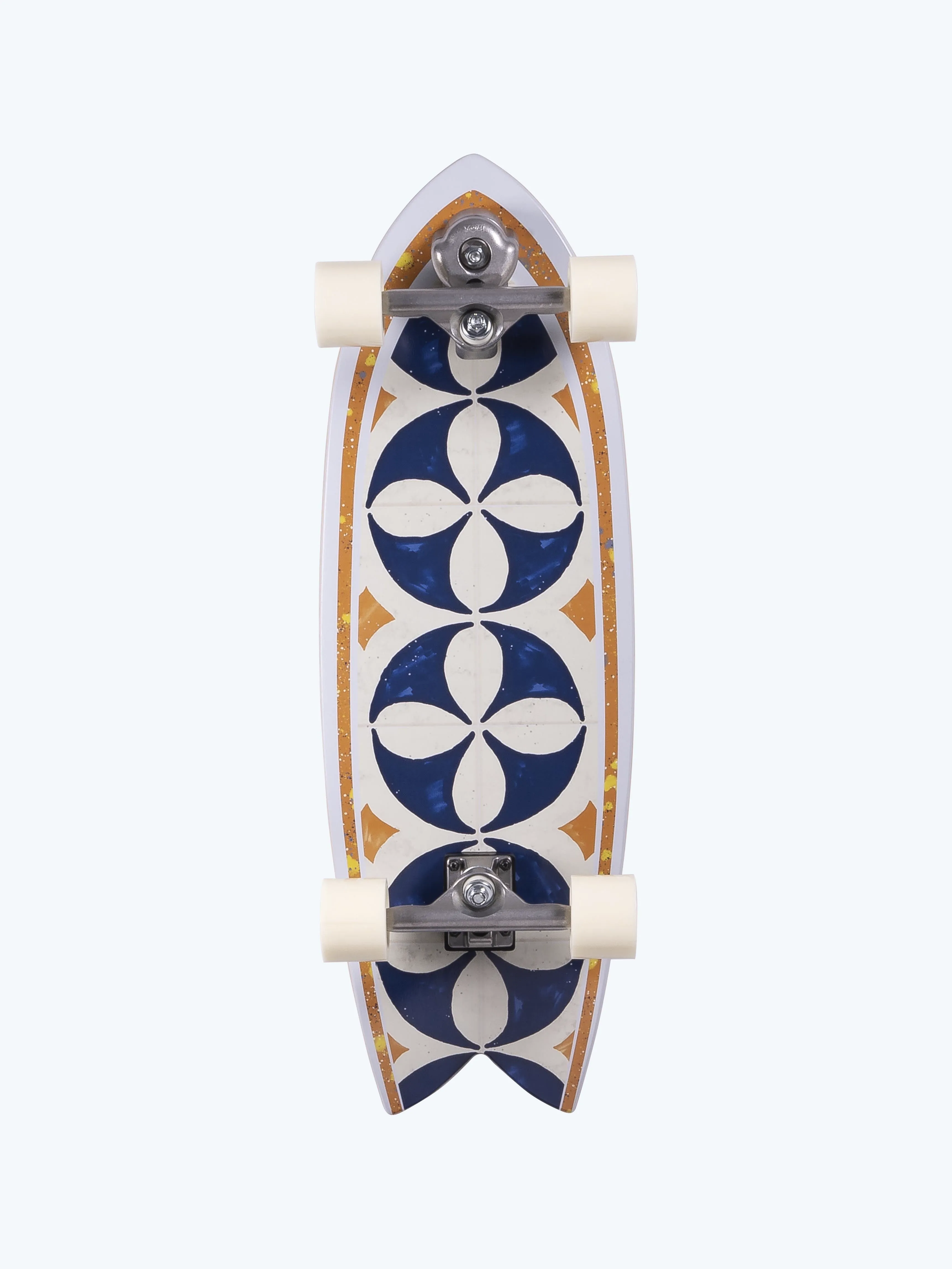 Classic twinfish shape with tremendous versatility. Wide deck and medium wheelbase for agile yet stable rides.